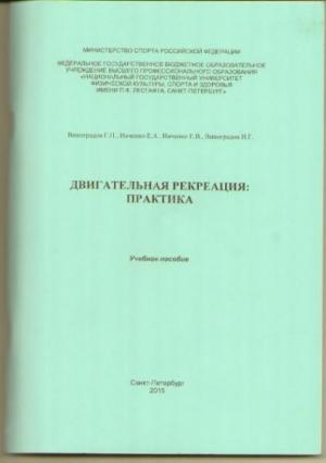 Виноградов Г.П. Двигательная рекреация: практика: учебное пособие / Г.П.Виноградов, Е.А.Ивченко, Е.В.Ивченко, И.Г.Виноградов. - СПб.: НГУ им.П.Ф.Лесгафта, Санкт-Петербург, 2015. - 146 с.