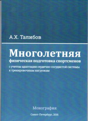 - Талибов А.Х. Многолетняя физическая подготовка спортсменов с учётом адаптации сердечно-сосудистой системы к тренировочным нагрузкам: монография / А.Х.Талибов; Национальный государственный университет физической культуры, спорта и здоровья имени П.Ф.Лесгафта, Санкт-Петербург. - СПб., 2016. - 149 с.
