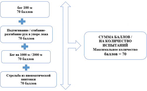 Максимальная оценка каждого норматива составляет 70 баллов.