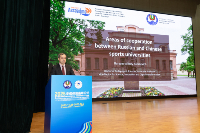 В рамках научной программы форума с докладом выступил Алексей Баряев, проректор по науке, инновациям и цифровой трансформации НГУ им. П.Ф. Лесгафта. Его доклад, посвященный ключевым аспектам продуктивного партнерства спортивных вузов России и Китая, вызвал живой интерес аудитории. Он представил результаты многолетнего сотрудничества, демонстрирующие успешную реализацию совместных образовательных и научно-исследовательских проектов, а также отметил взаимовыгодный обмен компетенциями и стимулирование инноваций в спортивной науке. Доклад подчеркнул эффективность выбранной модели международного сотрудничества и открыл новые горизонты для дальнейшего углубления стратегического партнерства между Россией и Китаем в сфере физической культуры и спорта.