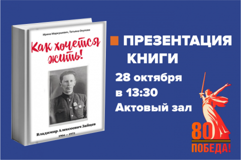 Приглашаем на презентацию историко-биографической книги «Как хочется жить!», посвященной жизни и подвигу Владимира Алексеевича Зайцева, военного врача, чья судьба неразрывно связана с нашим университетом.