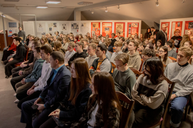 Главным событием стала встреча молодежи с главным архивистом Ленинградского областного государственного архива в г. Выборге Геннадием Москвиным. Эксперт подробно рассказал об историческом значении Международного военного трибунала, ставшего первым в мире опытом осуждения преступлений против человечности.