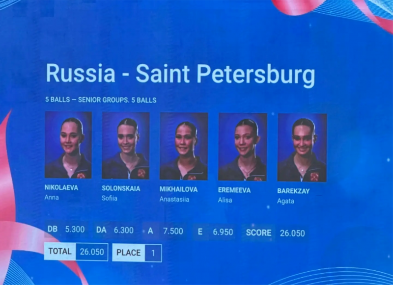 - В групповых упражнениях победу в финале с пятью мячами получила сборная команда Санкт-Петербурга. В составе команды выступали студентки кафедры теории и методики художественной гимнастики и спортивных танцев НГУ им. П.Ф. Лесгафта: