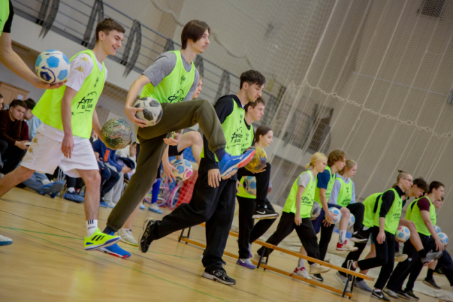 Практика в зале. Самой динамичной и запоминающейся частью семинара стала практическая работа в спортивном зале. Здесь теория воплотилась в жизнь: будущие педагоги смогли на себе испытать различные упражнения и оценить эффективность организационных решений для школьных уроков футбола, оказавшись в роли учеников.