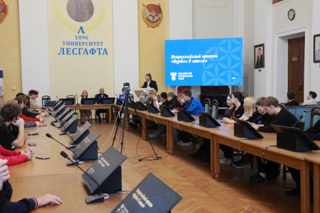 Вчера в НГУ им. П.Ф. Лесгафта прошел методический семинар, посвященный развитию проекта «Футбол в школе». Семинар, который посетили более 120 студентов и преподавателей НГУ им. П.Ф. Лесгафта, был организован Российским футбольным союзом в рамках соглашения о сотрудничестве с университетом, заключенного еще в 2023 году. Провел семинар руководитель методической группы проекта, мастер спорта СССР, чемпион СССР по футболу в составе ленинградского «Зенита» Дмитрий Баранник.