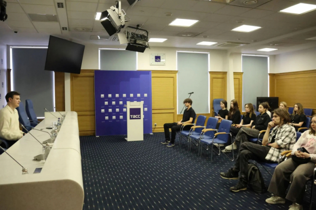 Следующая часть встречи была посвящена искусству организации публичных событий. Редактор спецпроектов Станислав Вязьменский раскрыл студентам закулисье подготовки пресс-конференций: от приглашения спикеров до тонкостей работы модератора. Ребята смогли увидеть служебные помещения и погрузиться в богатую историю агентства, основанного в 1904 году.