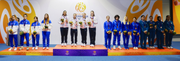 В ключевой момент на дорожку вновь вышла Карина Таллада и нанесла шесть безответных ударов Лейле Ахмадовой, обеспечив России лидерство – 35:30. Юлия Жданова, победив Валентину Зейналову со счетом 5:3, увеличила преимущество россиянок – 40:33. А Малена Кунашева в бою с Гусейновой поставила золотую точку в этой встрече и во всем турнире (5:2), установив итоговый счет 45:35!