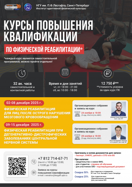 Программа повышения квалификации «Физическая реабилитация при травмах и заболеваниях спинного мозга» | ||||