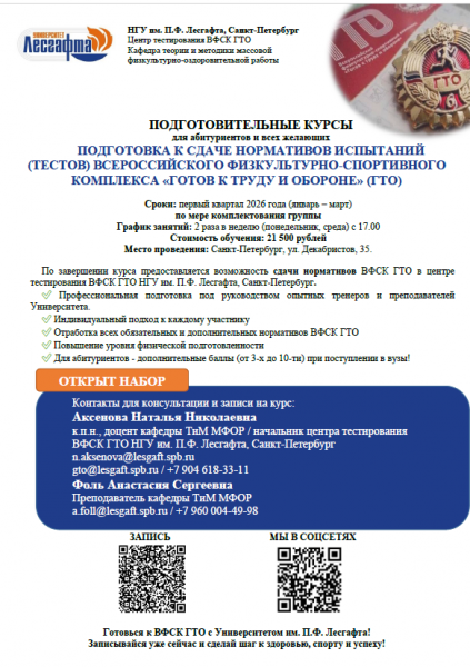 "НАЦИОНАЛЬНЫЙ ГОСУДАРСТВЕННЫЙ УНИВЕРСИТЕТ ФИЗИЧЕСКОЙ КУЛЬТУРЫ, СПОРТА И ЗДОРОВЬЯ ИМЕНИ П.Ф.ЛЕСГАФТА, САНКТ-ПЕТЕРБУРГ"